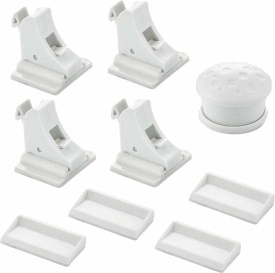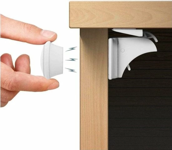 Het slot is gemakkelijk aan de binnenkant van een kastje te bevestigen. Met behulp van de magneetsleutel (1 stuk) is de kast handig open te maken, maar houd de sleutel altijd buiten het bereik van je kindje! Deze verpakking bevat 4 kastdeurklemmen.