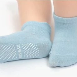 Merkloos 6 Paar – Stevige Baby Antislip Sokken Effen Blauw Grijs (6-12 Mnd) – Jongens Meisjes