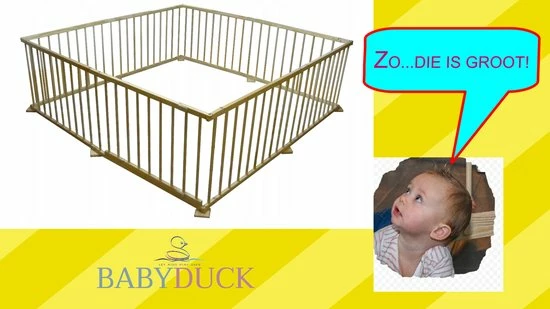 PAS OP VOOR IMITATIE: Helaas wordt er op Bol.com een soortgelijke grondbox verkocht maar dat is geen Babyduck en is niet voorzien van speciale anti-slip pads zoals bij een echte Babyduck. Hierdoor staat de grondbox minder stabiel en is minder veilig.