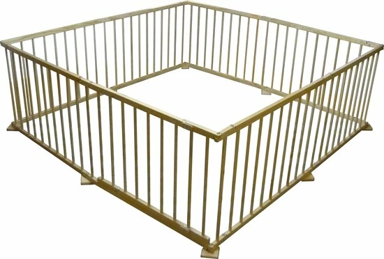 De grondbox heeft 8 panelen van 88 cm breed en 68 cm hoog waarbij in 1 paneel een deur is gemonteerd.