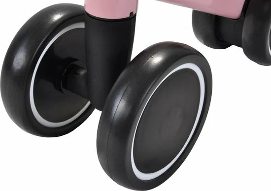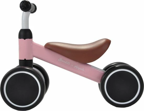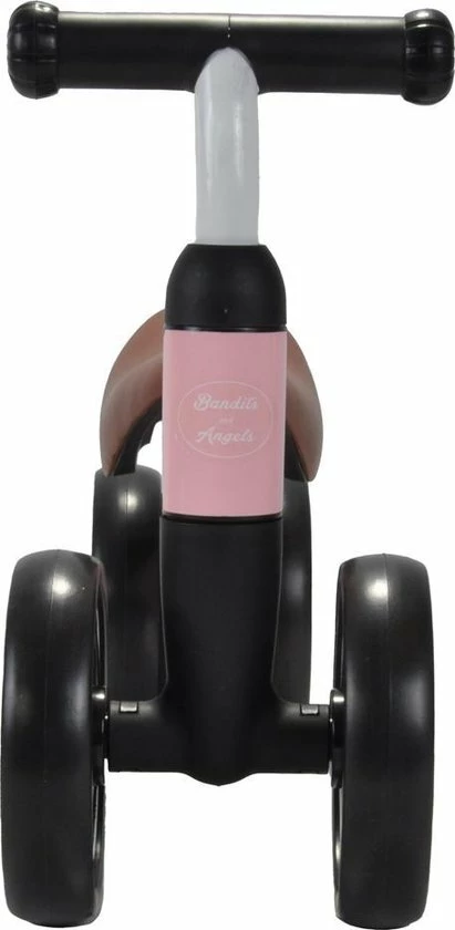 Een roze-kleurige loopfiets voor kinderen vanaf 1 jaar. De zadelhoogte is 22 cm, de stuurhoogte is 37 cm. De vier wielen maken deze Bandits & Angels loopfiets lekker stabiel. Ideaal dus als eerste fietsje! De wielen zijn bovendien geluidsarm, dus het loopfietsje kan zowel binnen als buiten gebruikt worden. De stuurbegrenzer zorgt ervoor dat jouw kleine niet te ver door kan sturen.
