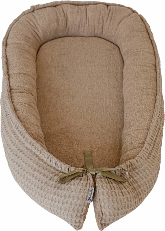In de rand van het nestje zit een touwtje, waarmee je de maat helemaal kan aanpassen op jouw baby. Je baby voelt zich hierdoor geborgen, net als bij inbakeren. Een vertrouwd gevoel, net als toen hij veilig in de baarmoeder zat.
