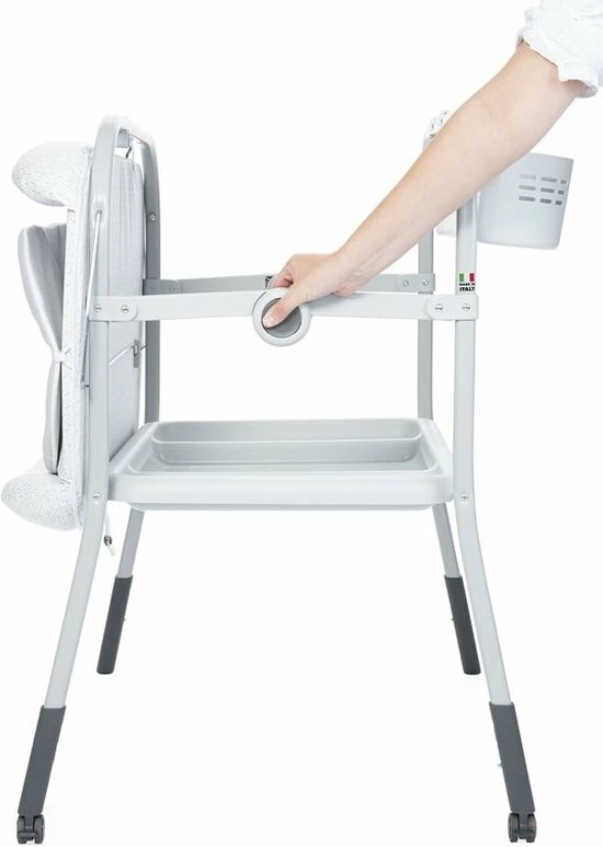 De verzorgingstafel is voorzien van een fluweelzacht, verwijderbaar verkleinkussen voor optimaal comfort. Heb je de badcommode even niet nodig? Deze is dan uiterst compact opvouwbaar en eenvoudig op te bergen dankzij de 2 wieltjes.
