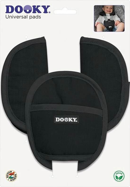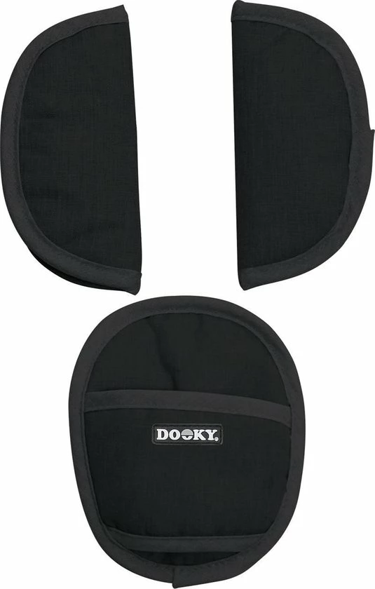 De Dooky gordelbeschermers zijn stijlvolle zachte kussentjes voor de gordels en het kruisstuk van de autostoel groep 0+, groep 1 maar ook voor de buggy. Perfect te combineren met de zwarte autostoelhoes 0+ van Dooky. Zo zit je kindje heerlijk comfortabel in de autostoel. De gordelbeschermers zijn zeer gemakkelijk aan te brengen door het klittenband.