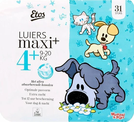 Etos Woezel & Pip Luiers hebben een exclusief Woezel & Pip design. In de verpakking zitten 2 verschillende soorten designs.