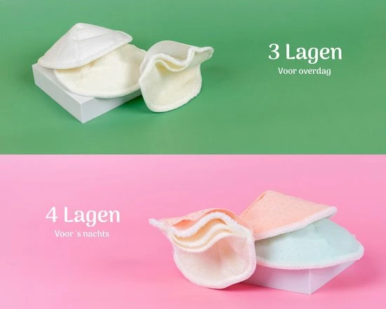 Wij zijn de eerste op de Nederlandse markt met 4 lagen zoogcompressen. Wij snappen namelijk dat niet iedere vrouw en situatie hetzelfde is, daarom vinden wij het belangrijk je de mogelijk te geven om te kunnen kiezen tussen 3 en 4 lagen. Afhankelijk van jouw situatie.