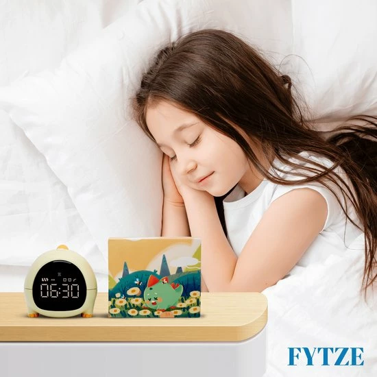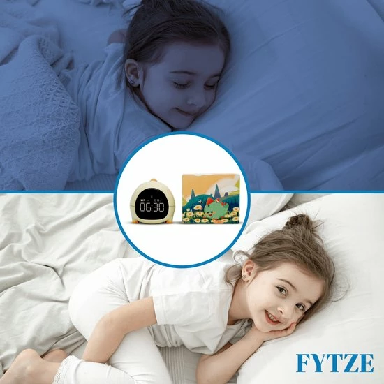 Deze slaaptrainer leert je kindje het verschil tussen dag en nacht. Soms vinden kinderen het moeilijk om het ritme van dag en nacht in te schatten. Ze worden wakker en denken dat het tijd is om op te staan, terwijl ze eigenlijk nog een paar uur in bed zouden moeten liggen. Dit probleem wordt vaak verergerd wanneer de dagen korter worden of wanneer de zomertijd begint. FYTZE is een slaaptrainer die kinderen helpt een gevoel voor tijd te ontwikkelen.