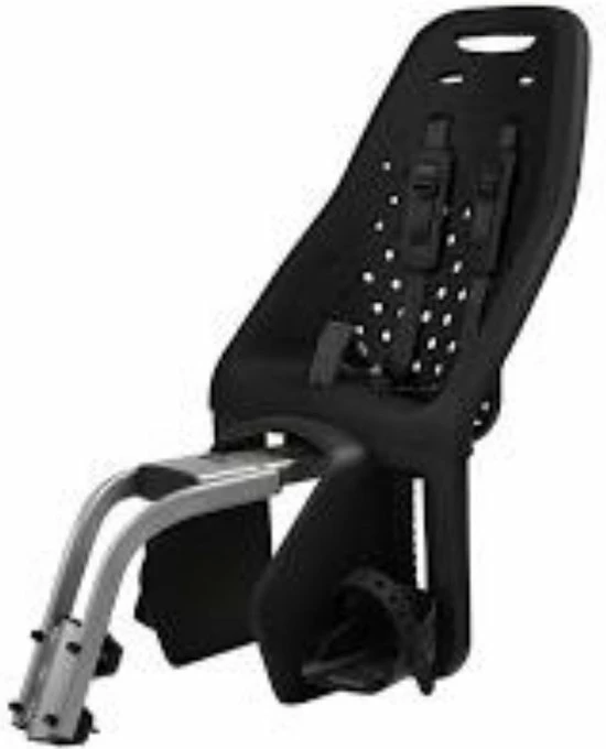 De Thule Yepp Maxi Frame Mount Black is een fietszitje dat ontworpen is voor achterop de fiets door middel van een zadelbuisbevestiging. Dit zitje is te gebruiken vanaf 9 maanden tot 6 jaar en tot 22 kg. Het is een slim en functioneel zitje met persoonlijkheid voor dagelijks gebruik en kan makkelijk bevestigd worden aan de frame van uw fiets. De Thule Yepp Maxi FM biedt maximaal comfort door de zachte en schokabsorberende zitting en heeft een veilige en goede pasvorm dankzij de verstelbare, vijfpuntsgordel met zachte schouderpads. Ook gemak en flexibiliteit zijn verzekerd naarmate het kind groter wordt dankzij de met één hand verstelbare voetsteunen en voetriemen. Ook geeft de ingebouwde reflector en bevestigingspunt voor fietsverlichting u meer veiligheid. Het zitje is makkelijk te reinigen en droog te houden dankzij de waterafstotende materialen van het fietszitje en tevens voorzien van een slot.