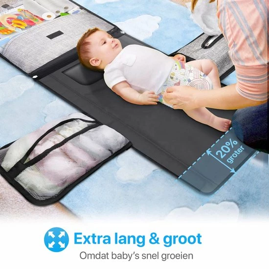 Bestaande uit 2 grote netvakken voor luiers, 1 groot binnenvak voor babyolie of crèmes, 1 uitgebreid open vak voor vochtige doeken en 2 buitenzakken met ritssluiting voor mobiele telefoon en sleutels. Met het waterbestendig verschoningsmatje kan je jouw baby goed verschonen. Of je nu slechts een korte wandeling maakt, langs de kinderboederij gaat of een hele dag in de dierentuin bent, deze luiertas ga je veel gebruiken!