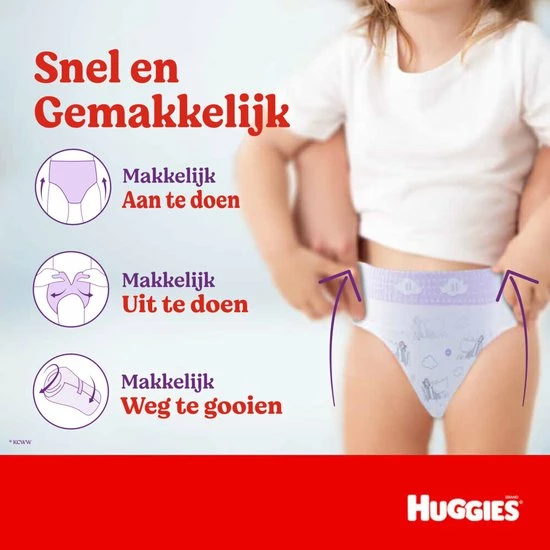 Nieuw! Huggies luierbroekjes hebben nu een ultrazachte tailleband. Dankzij de Quick Dry-technologie absorberen deze luierbroekjes in enkele seconden en zo blijven de billetjes van jouw kleintje droog en beschermd. De combinatie van de zijdezachte tailleband, dubbele lekrandjes en vochtigheidsindicator zorgen voor extra bescherming. Voorkom huidirratie en probeer Huggies luierbroekjes voor het allerzachtste huidje.