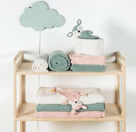 Deze deken komt uit de river knit collectie. Maak de sfeer compleet met een boxkleed, kinderwagendeken, de matchende opbergmandjes, de wasbare hoes voor het aankleedkussen en de kruikenzak en trek de stijl moeiteloos door naar je auto met de heerlijke voetenzak voor in de autostoel.