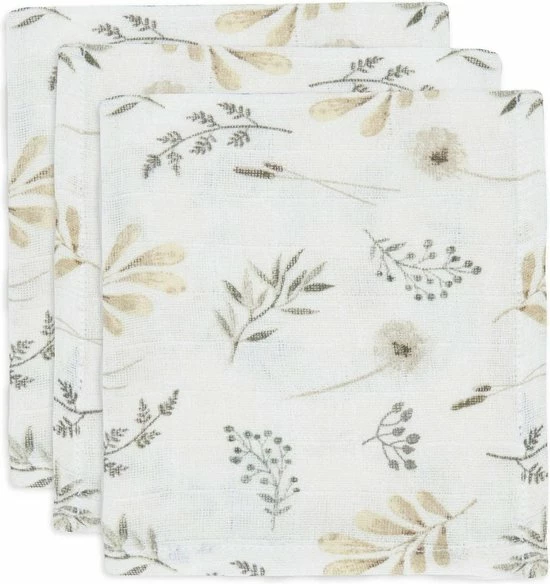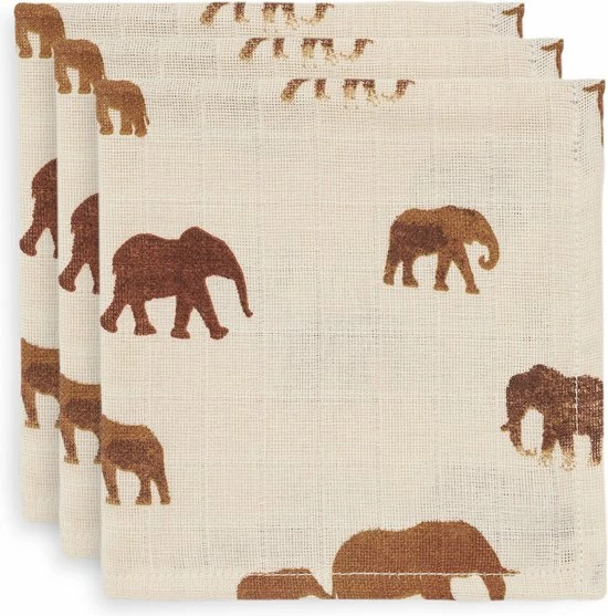 De monddoekjes worden geleverd in een 3-pack. Twee van de monddoekjes in de verpakking hebben het olifanten printje en ??n monddoek heeft de uni kleur bruin (chestnut). De doekjes kun je lekker heet uitwassen zodat ze altijd weer hygi?nisch te gebruiken zijn. Je mag ze wel strijken maar slim om dat juist niet te doen. Ongestreken hydrofiel doeken nemen meer vocht op.