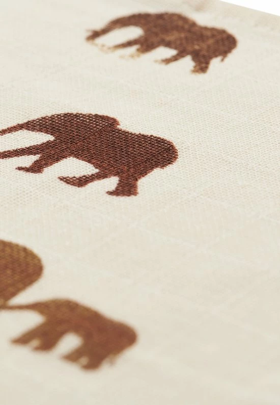 De kleuren van dit savannah olifanten printje van Jollein zijn chestnut en caramel op een ivory ondergrond. Er zijn ook andere prints verkrijgbaar.