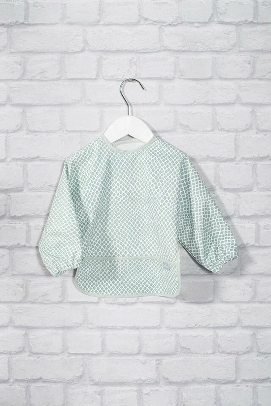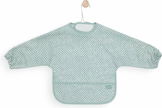Deze slab met mouwen is geweldig. Het is een soort schortje en beschermt de kleertjes van jouw baby of dreumes extra goed door die mouwtjes.