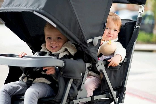 Bij het lopen met een baby is het eenvoudig om een reissysteem te cre?ren met de meegeleverde universele adapter voor het autostoeltje. De grote kap zorgt voor voldoende dekking en de achterkapverlenging dekt het achterste kind tijdens het zitten. Gekoppelde parkeerremmen en vering op alle wielen zorgen voor een soepele rit voor uw kinderen. We hebben ook een organizer met twee bekerhouders en een vakje met rits voor sleutels, portemonnee of telefoon ge?ntegreerd.