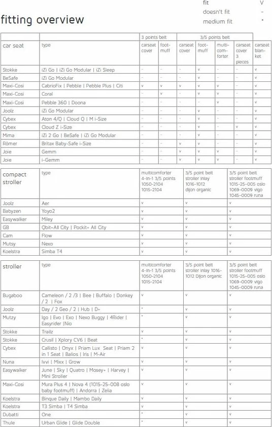 - Controleer onze ?fitting overview? om te kijken of de voetenzak geschikt is voor jouw buggy