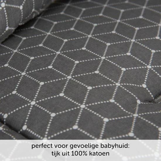 - Comfort: Het gevoerde zitkussen heeft precies de juiste dikte voor optimaal comfort: dik genoeg dat je baby lekker zacht zit, maar niet zo dik dat de stoel te krap wordt.