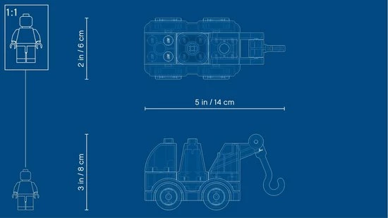 - De sleepwagen is ca. 9 cm lang, 7 cm hoog en 6 cm breed ? het ideale formaat om hem overal mee naartoe te nemen. Combineer met andere LEGO? DUPLO? sets voor nog meer plezier.