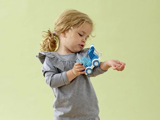 Kan jouw kleine vrachtwagenchauffeur met Mijn eerste sleepwagen anderen in moeilijkheden helpen? Na het snel een gemakkelijk in elkaar zetten van de sleepwagen ontwikkelt hij of zij de fijne motoriek door de vierwieler naar een noodsituatie te duwen, de verkeerskegel neer te zetten om automobilisten te waarschuwen en de haak te bewegen.