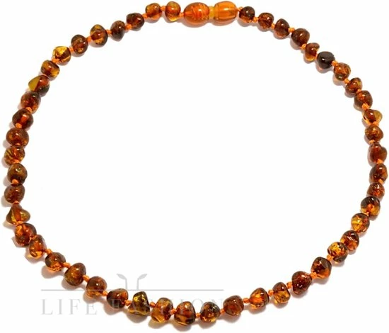 Barnsteen, ook wel Amber genoemd, zorgt voor een pijn verzachtende werking. Voor baby?s helpt barnsteen/amber goed bij het doorkomen van tandjes. Dit komt door het Barnsteen zuur dat vrij komt door de warmte van de huid. De Amber baby kettinkjes zijn met de hand geknoopt. Na elk ambersteentje zit een knoopje.