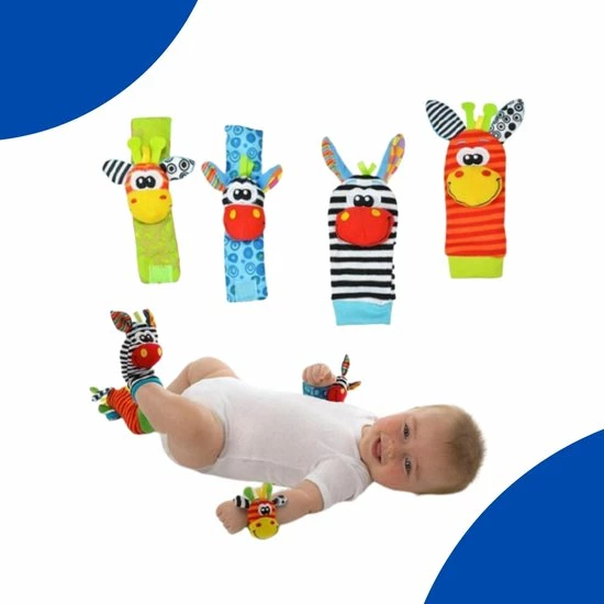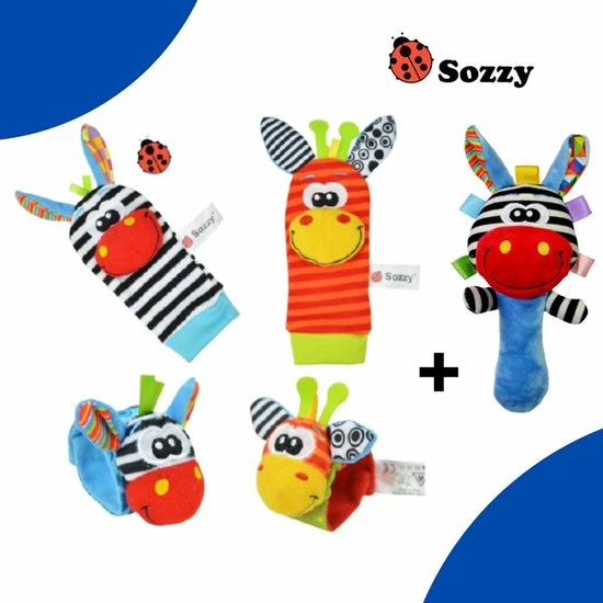 Zodra je baby of peuter zijn of haar handjes en voetjes ontdekt, zal hij of zij uren speelplezier beleven aan deze Soztoys rammelaars met verschillende kleurtjes, geluidjes en stofjes.