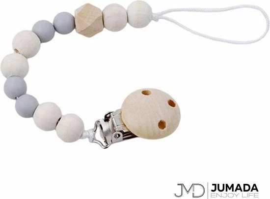 Dit grijze speenkoord is makkelijk te bevestigen aan kleding of kinderwagen, dankzij een eenvoudige sluiting. De mooie kleuren maken het makkelijk te combineren met verschillende kledingstijlen. De speenketting is speekselbestendig, onschadelijk als de baby het in zijn mond stopt en makkelijk schoon te maken.