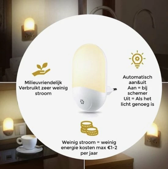- Dit stekkernachtlampje is onmisbaar voor een praktische en voordelige huisverlichting en veilige verlichting.