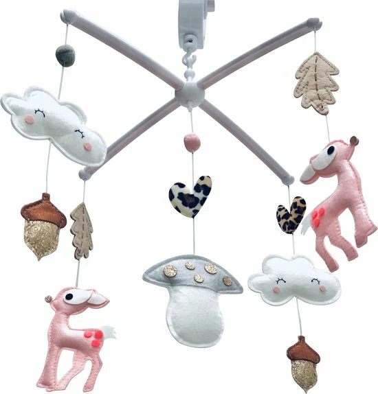 De losse muziekmobiel houder is gemaakt van wit kunststof en het muziekdoosje heeft een aan- en uitknop. Er kunnen standaard 5 hangertjes aan gehangen worden. Wil je er meer hangertjes aan hangen? Dan kun je er zelf extra gaatjes in boren.