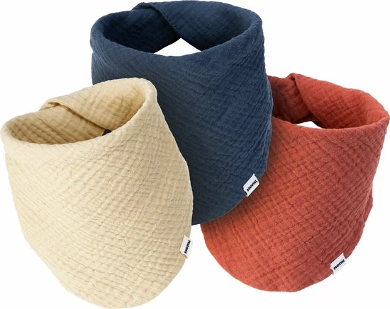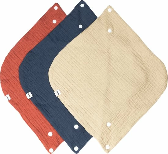 Komen de tandjes door van jouw kleintje? Begin je met de eerste baby hapjes? Dan zijn deze Slabbetjes onmisbaar. Het is een set van 3 stuks in de mooie trendy kleuren koper rood, petrol blauw en beige. Ze zijn dan ook perfect te gebruiken als shawl om je kleintje lekker warm te houden.