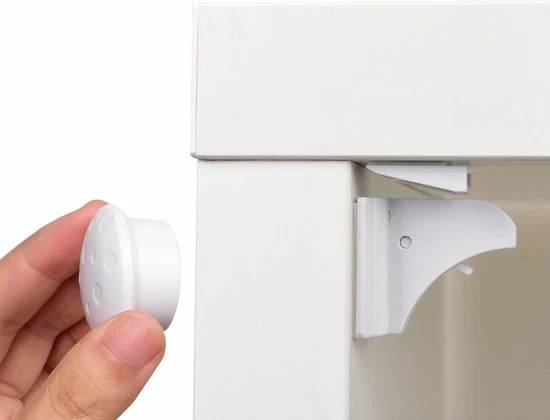 Onzichtbare sloten kunnen worden verwerkt in de binnenkant van uw kast of lade en zijn gemakkelijk te openen met behulp van de bijgeleverde magneetsleutel. Voor het bevestigen van de sloten heeft u geen gereedschap of schroeven nodig en zult u dus geen blijvende schade aanbrengen op uw kasten. (mogelijk ook met schroeven)