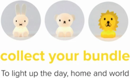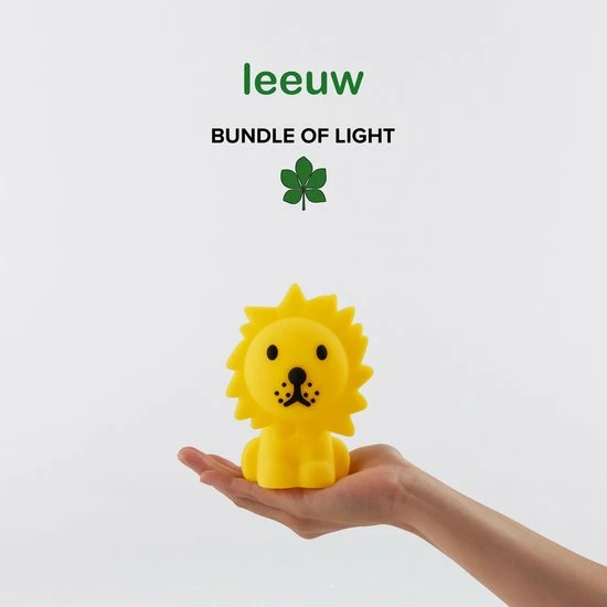 ONZE MINI-LAMPJES Onze serie Bundle of Light bestaat uit vrolijke lichtpuntjes. De collectables zijn ontworpen om kleine momentjes van licht te cre?ren. Leuk om te verzamelen maar ook een lief cadeautje van licht voor iedereen om je heen. Deze mini-lampjes in de vorm van Nijntje (15 cm), Boris (10,2 cm), Snuffie (11cm) en Leeuw (12,6 cm) zijn de lichtpuntjes van de dag. Ze zijn gemaakt van zacht siliconen en bevatten een klein batterijtje om het LED lampje te doen schijnen. Het lampje gaat automatisch uit na 15 minuten. Zet aan/uit met de knop onderop het lampje. De knoopcelbatterij (CR2032) is inbegrepen.