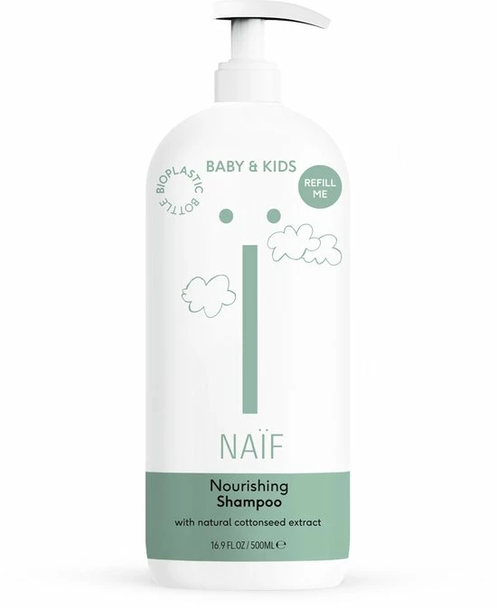 Na?f Voedende Shampoo voor baby’s en kids, met natuurlijke conserveringsmiddelen. De milde shampoo prikt niet in de ogen. De shampoo reinigt en verzacht.