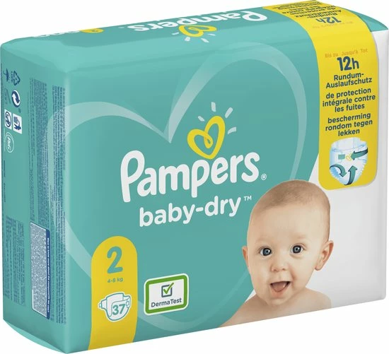 Pampers Baby Dry luiers houden je kleintje droog en fris. De luiers zorgen ervoor dat lucht goed kan circuleren, waardoor de kans op lekken en huidirritatie wordt verkleind. Zo kunnen jij en je kindje heerlijk doorslapen ?s nachts! De luiers hebben een absorberende toplaag, die vocht direct absorbeert en weghoudt van de tere billetjes van je kleintje. Pampers Baby Dry hebben drie absorberende banen en microparels. Daarnaast zijn ze heerlijk zacht, flexibel en hebben ze een comfortabele pasvorm. Een goede bescherming tegen lekken. Pampers Baby Dry Luiers ? Dermatologisch getest ? Vrij van de 26 allergenen uit de EU lijst ? Zacht absorberende bovenlaag ? Absorberende microparels ? Drie absorberende banen ? Gemakkelijk en hygi?nisch dicht te vouwen dankzij de plakstrip ? Absorberende kern die vocht onmiddellijk absorbeert ? Luiers zo zacht als katoen (bevat geen katoen) ? Flexibele zijkanten ? Flexibel tailleband die zich aanpast aan het buikje van je kindje Waarom luiers kopen bij Postdrogist.nl & Onlineluiers.com ? Altijd de voordeligste luiers, luierbroekjes en billendoekjes van merken als Pampers, Huggies en Pura. ? Niet meer op zoek hoeven gaan naar aanbiedingen. ? Handige maandboxen met luiers, luierbroekjes of billendoekjes. Geen gesjouw en zo aan je deur afgeleverd. ? Groot aanbod. ? Snelle bezorging. ? Makkelijk andere drogisterij producten tegen fijne prijzen direct mee te bestellen.