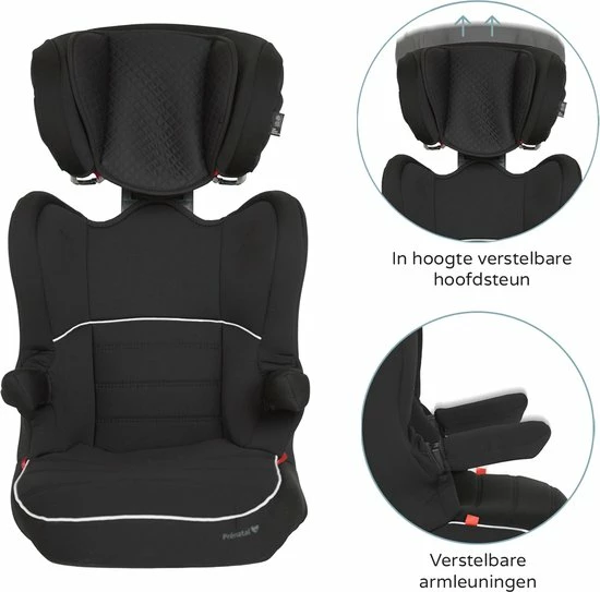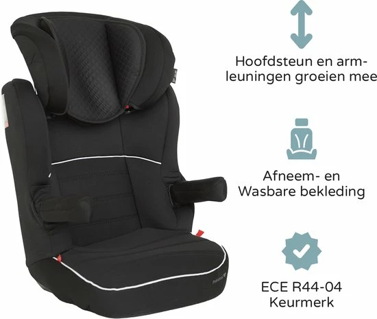 Deze praktische autostoel is geschikt voor kinderen van 15 tot 36 kilogram (vanaf 4 tot circa 10 jaar). De hoofdsteun van de autostoel is in hoogte verstelbaar en de stoel is uitgerust met verstelbare armleuningen. Aan beide kanten van het autostoeltje is extra zijdebescherming te vinden, waardoor je kindje veilig mee kan reizen. De hoes is afneembaar en daardoor gemakkelijk te wassen.
