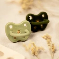 Hevea | Dental Orthodontisch 3-36 Maand | Moss Green, Deep Forest Green, Milky White | 100 % Natuurrubber | Kroontjes | Ster & Maan