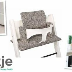 Ukje Kussenset – Geschikt Voor Stokke Tripp Trapp Kinderstoel – Geplastificeerd – Groen – Aap Print