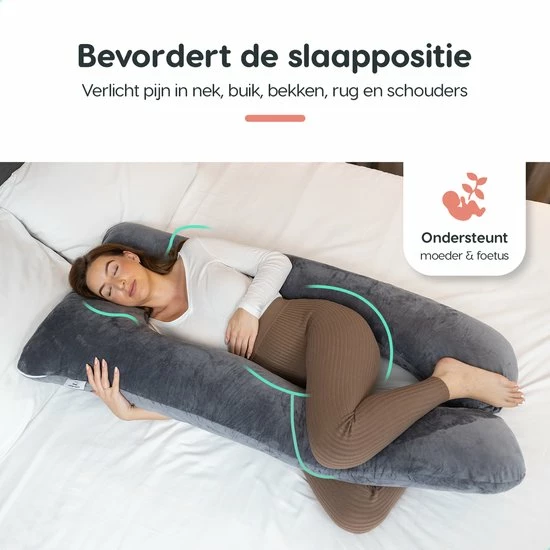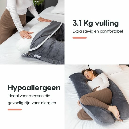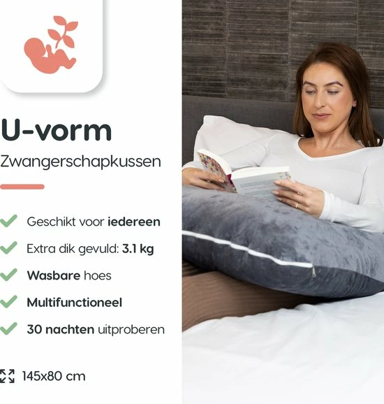 Wil jij ook beter slapen tijdens je zwangerschap? Door het ergonomische design en de 3,1kg vulling is ons zwangerschapskussen extra stevig ?n ondersteunend. Hierdoor slaap je in de perfecte houding tijdens je zwangerschap. Het U-vormige design vormt zich naar je lichaam en bied optimale ondersteuning. Dit is goed voor jou als moeder en goed voor je baby.