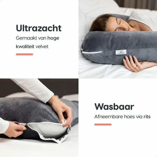 - Door zijn U-vorm ook geschikt als zijslaapkussen of lichaamskussen voor mensen met rugklachten of na operaties.
