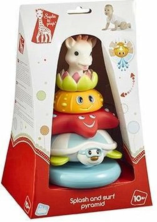 Sophie de Giraf splash and surf piramide om uw kindje in bad te vermaken! Een piramide waaraan van alles ontdekt kan worden en die de ontwikkeling van de zintuigen van baby stimuleert.
