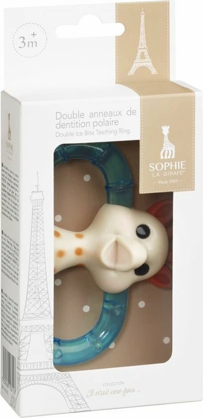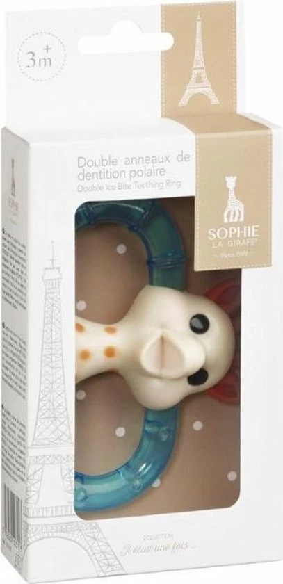 De twee zachte ringen zijn gevuld met gesteriliseerd water. Na koeling van de bijtring zorgt, bij het kauwen op de twee zachte ringen, de kou ervoor dat de pijn van het doorkomen van de tandjes verdoofd wordt.Het oppervlak van de twee ringen is getextureerd voor een zachte massage van het tandvlees. Een combinatie van zachte delen om op te kauwen (oren, hoorntjes, ringen) en harde, die verschillend aanvoelen. Door de twee handgrepen gemakkelijk vast te pakken en te bewegen.