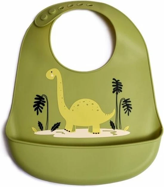 Hippe siliconen slabber met dino afbeelding voor de allerkleinsten. Deze slabber is voorzien van een handig opvangbakje voor de restjes eten die geknoeid worden tijdens het eten. De slabber is verstelbaar waardoor deze slabber geschikt is voor kinderen vanaf o tot 4 jaar en lekker lang mee kan.