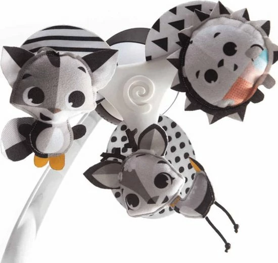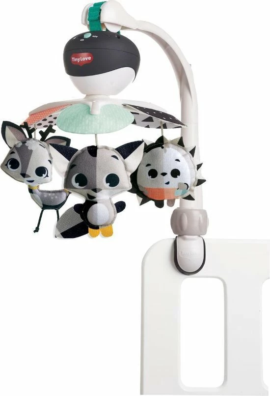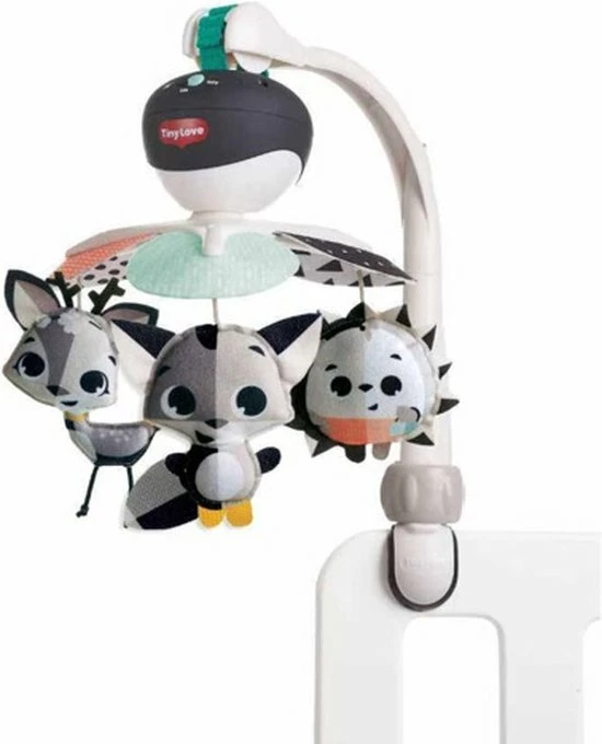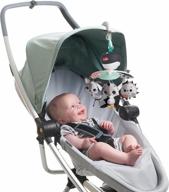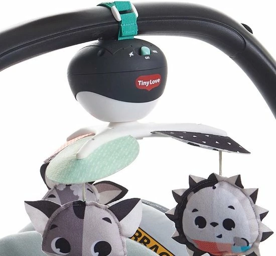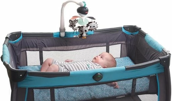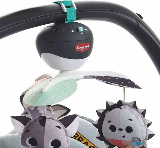 De Tiny Love Take Along Mobiel is een kleurrijke en boeiende mobiel die gemakkelijk overal mee naartoe gaat met je baby. Vanaf zeer jonge leeftijd zullen baby’s het gevoel van veiligheid en continuïteit waarderen dat wordt opgeroepen door deze mobiel overal mee naartoe te nemen. Het beschikt over 30 minuten met 5 verschillende melodieën om je kleintje te kalmeren en te amuseren. De kleurrijke hangende speeltjes draaien om je baby visueel te stimuleren. Deze aanpasbare mobiel is ontworpen om gemakkelijk aan de meeste speelterreinen, kinderwagens en wiegjes te worden bevestigd, zodat je hem overal mee naartoe kunt nemen, waar de dag jou en je baby ook brengt.