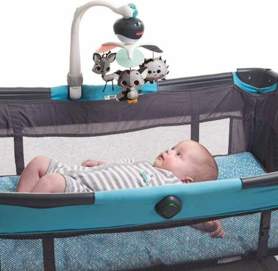 - 3-IN-1 ON THE GO SPEELGOED – met de speciale connector kunt u de mobiel bevestigen aan speelterreinen, reiswiegjes, kinderwagens, wiegen en meer.